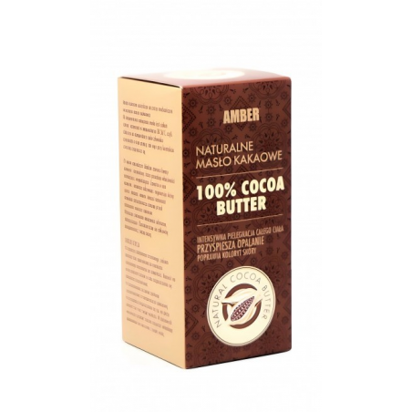 Naturalne masło kakaowe 100% Amber w sztyfcie o wadze 100g to doskonały sposób na kompleksową pielęgnację skóry. Pozyskiwane przez mechaniczne wyciskanie nasion kakaowca, jest ono niezwykle wartościowym kosmetykiem o wielu zaletach. W temperaturze pokojowej prezentuje się jako stała substancja o twardym skupieniu, a przy temperaturze 30-36 stopni C zmienia się w postać ciekłą, co sprawia, że bezproblemowo się aplikuje.