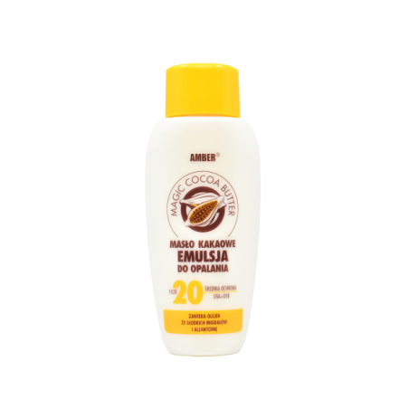 Masło Kakaowe Emulsja Kakaowa do Opalania z Filtrami 20 UVA+UVB o pojemności 200 ml to delikatny preparat, który łączy w sobie zaawansowane filtry UVA i UVB, zapewniając skuteczną ochronę przed szkodliwym promieniowaniem słonecznym. Produkt jest idealnym wyborem dla osób poszukujących subtelnej pielęgnacji skóry podczas opalania.