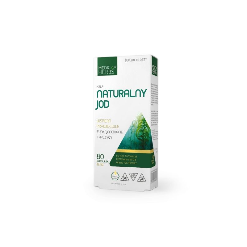 Naturalny Jod to suplement diety zawierający standaryzowany wyciąg z wodorostów kelp (Laminaria japonica), będących naturalnym źródłem jodu. Jod wspomaga prawidłowe funkcjonowanie tarczycy oraz właściwą produkcję hormonów tarczycy.
