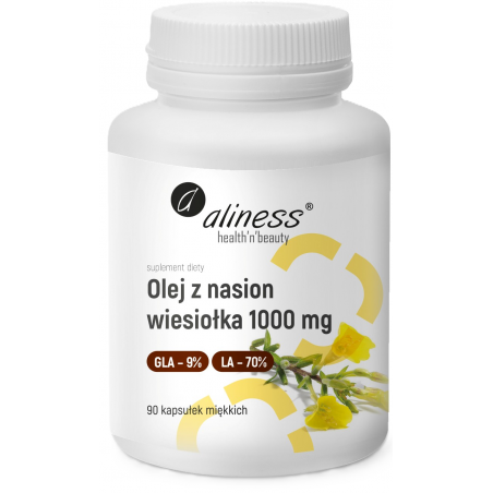 Suplement diety zawierający wysokiej jakości olej z wiesiołka dwuletniego tłoczony na zimno. Każda kapsułka dostarcza 1000 mg oleju, w tym 9% kwasu gamma-linolenowego (GLA) oraz 70% kwasu linolowego (LA).