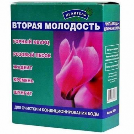 Mieszanka Kwarcu Górskiego, Różowego Piasku, Jadeitu, Krzemienia i Szungitu o wadze 380g to oryginalny eliksir młodości z Rosji, który pełni funkcję filtru wody przeciwutleniacza. Ta wyjątkowa kompozycja składników to unikalny kompleks pięciu najstarszych minerałów Ziemi, która działa korzystnie na zdrowie i oczyszczenie wody.