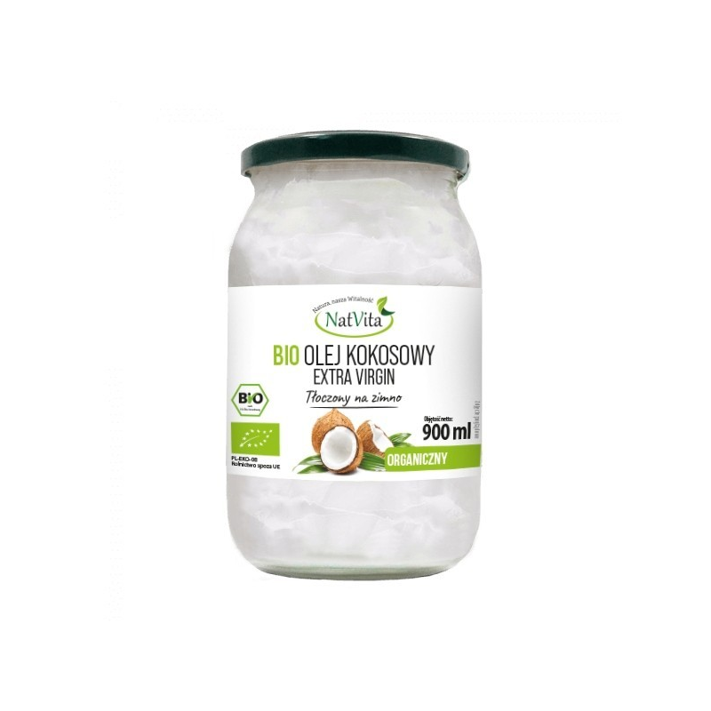 Olej Kokosowy BIO Extra Virgin to 100% czysty olej ze świeżych orzechów kokosowych (Cocos nucifera).