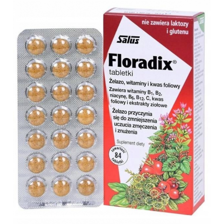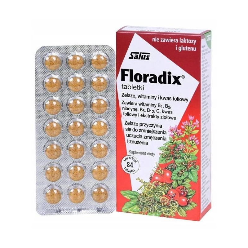 Floradix Żelazo tabletki to suplement diety zawierający organiczne żelazo w dobrze przyswajalnej formie glukonianu żelaza (II), uzupełnione o witaminy z grupy B, witaminę C, kwas foliowy oraz ekstrakty roślinne. Produkt został opracowany z myślą o osobach wymagających zwiększonej podaży żelaza, w tym kobietach w ciąży i okresie laktacji